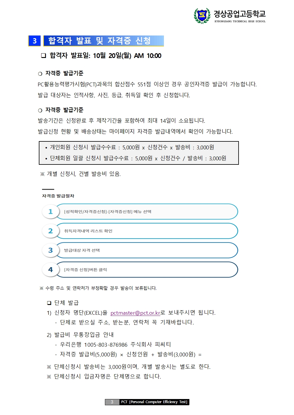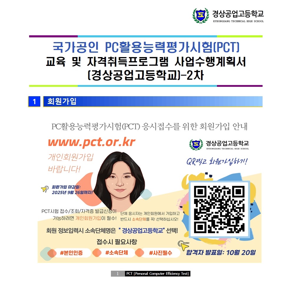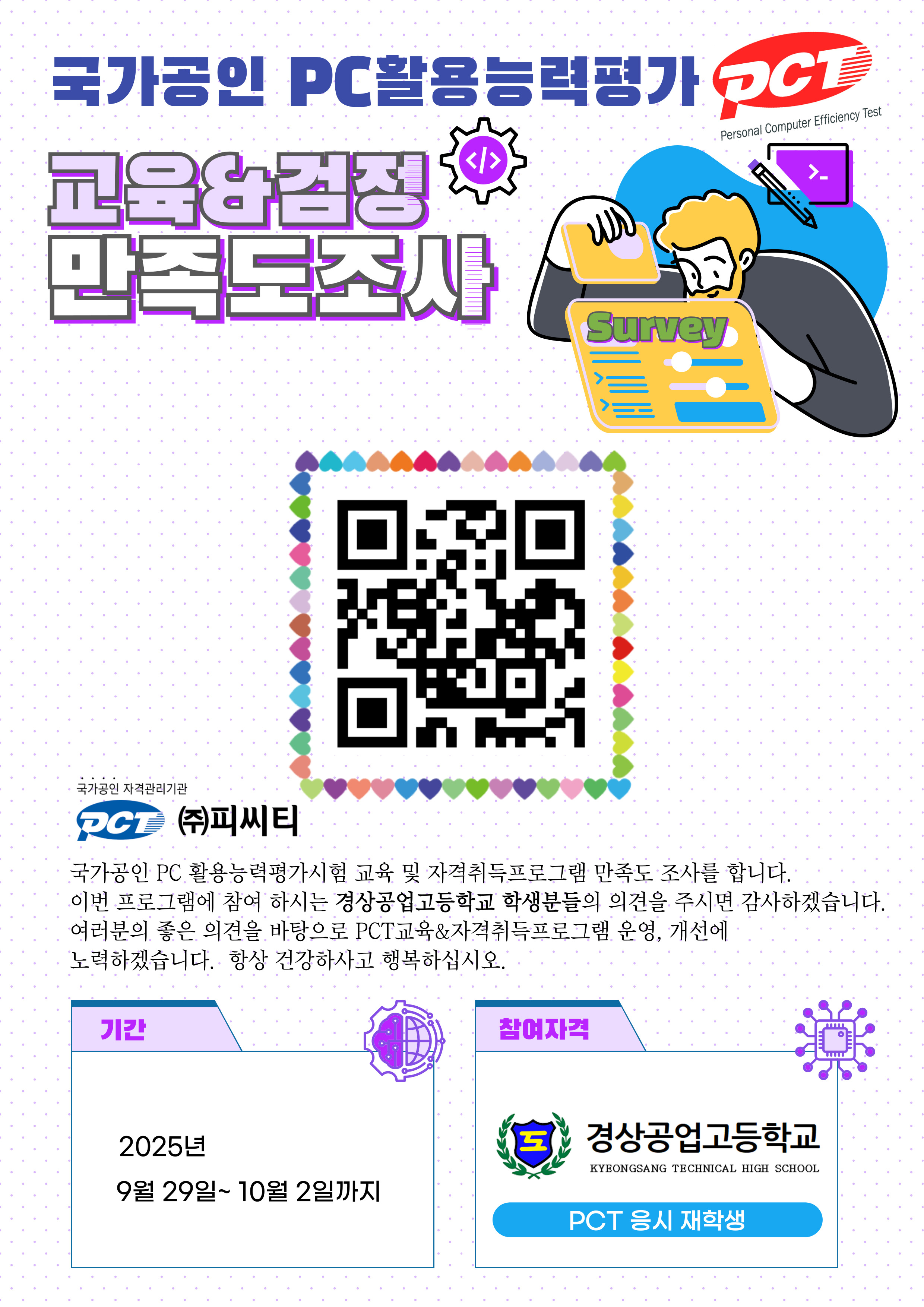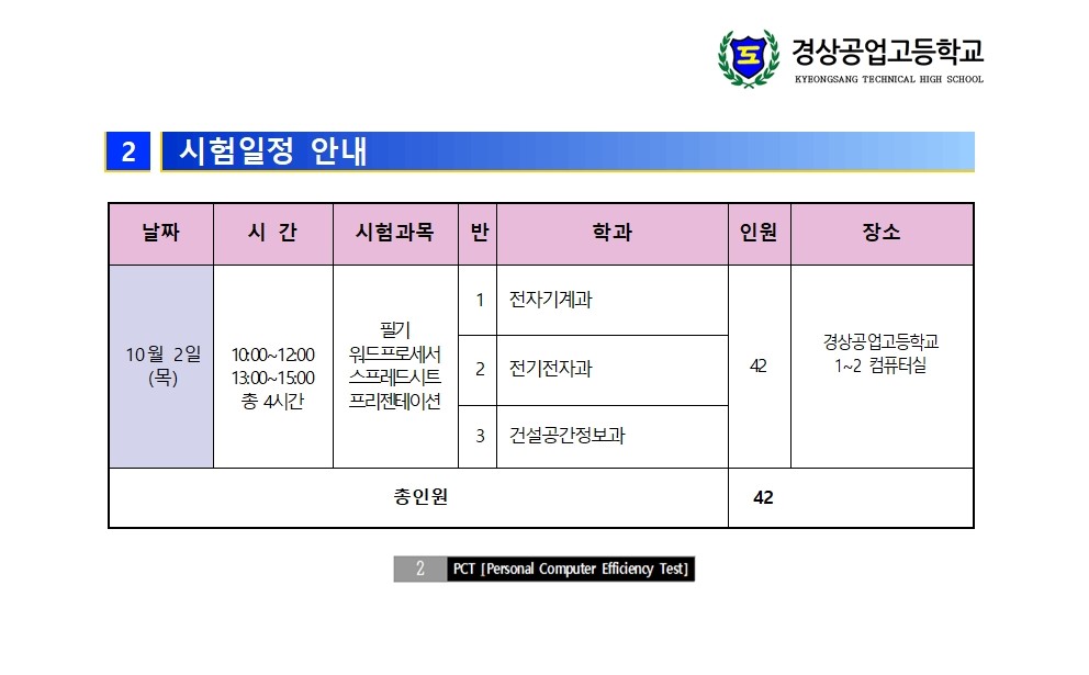 2025년 2차 경상공업고등학교 재학생 대상 국가공인 PC활용능력평가시험(PCT)시험안내