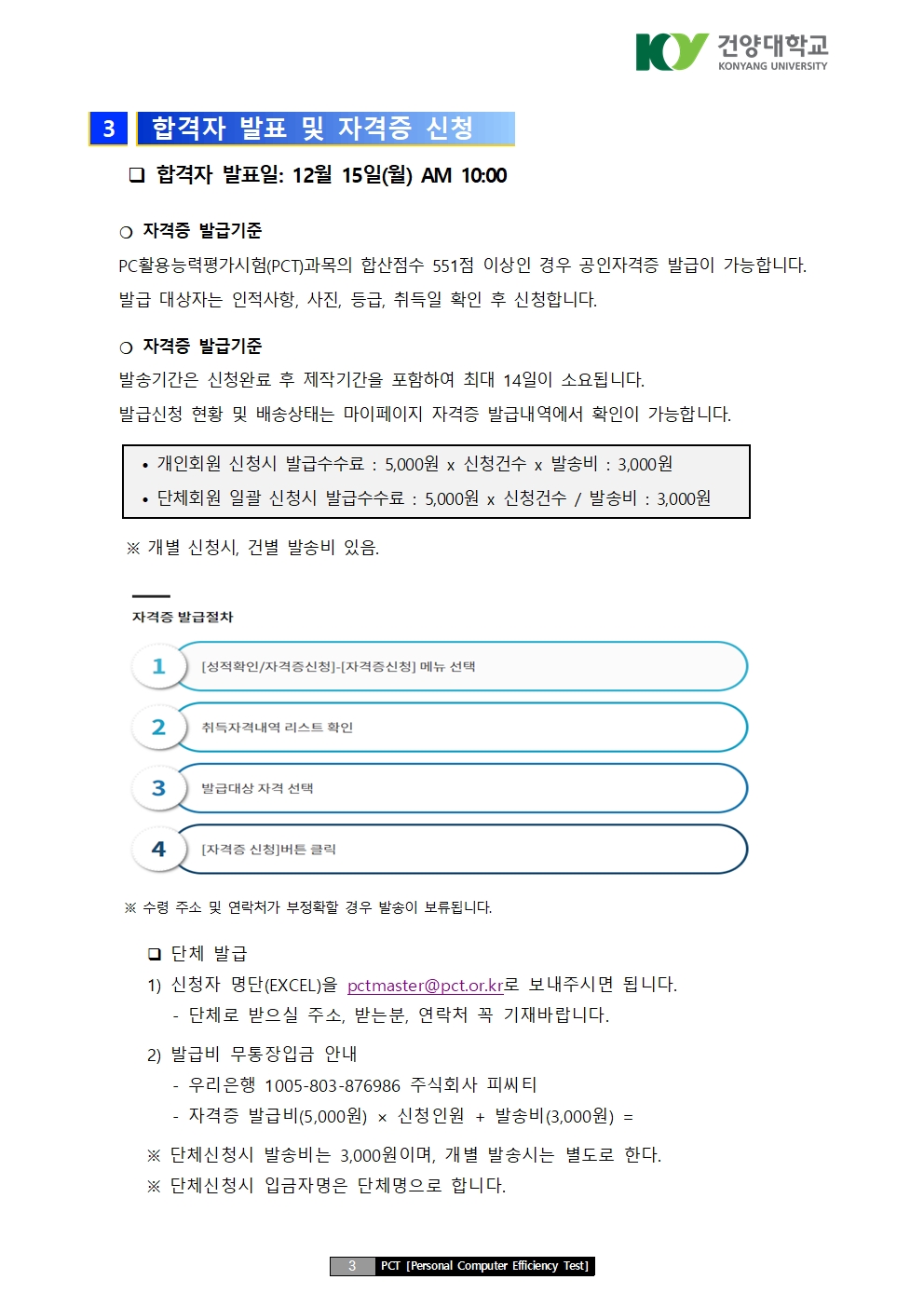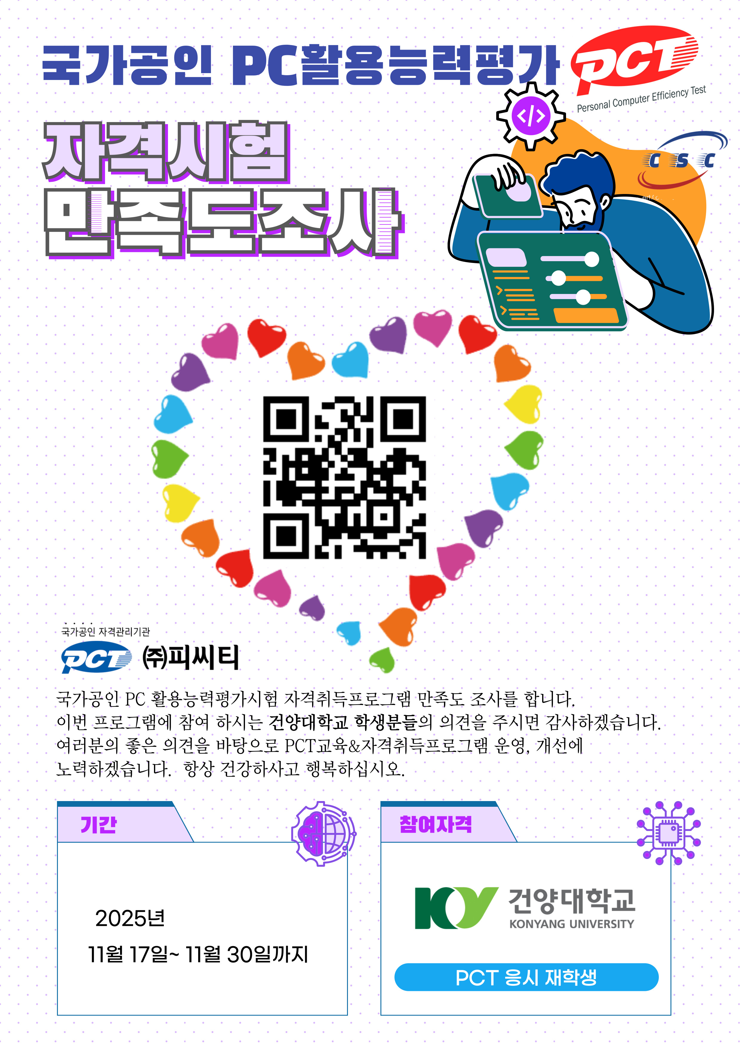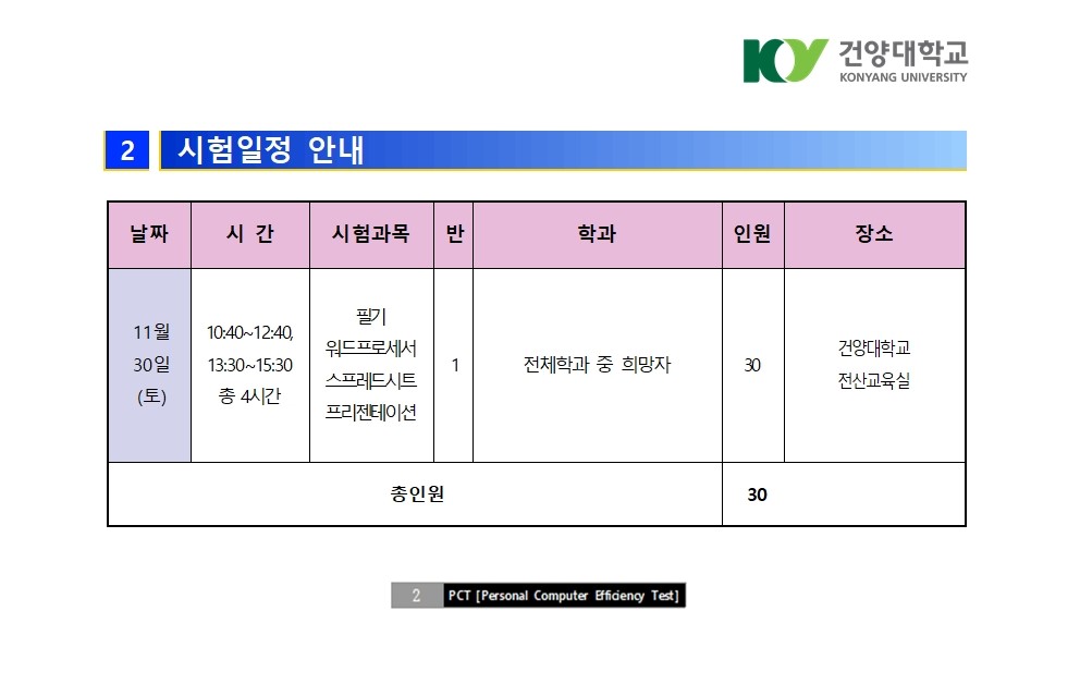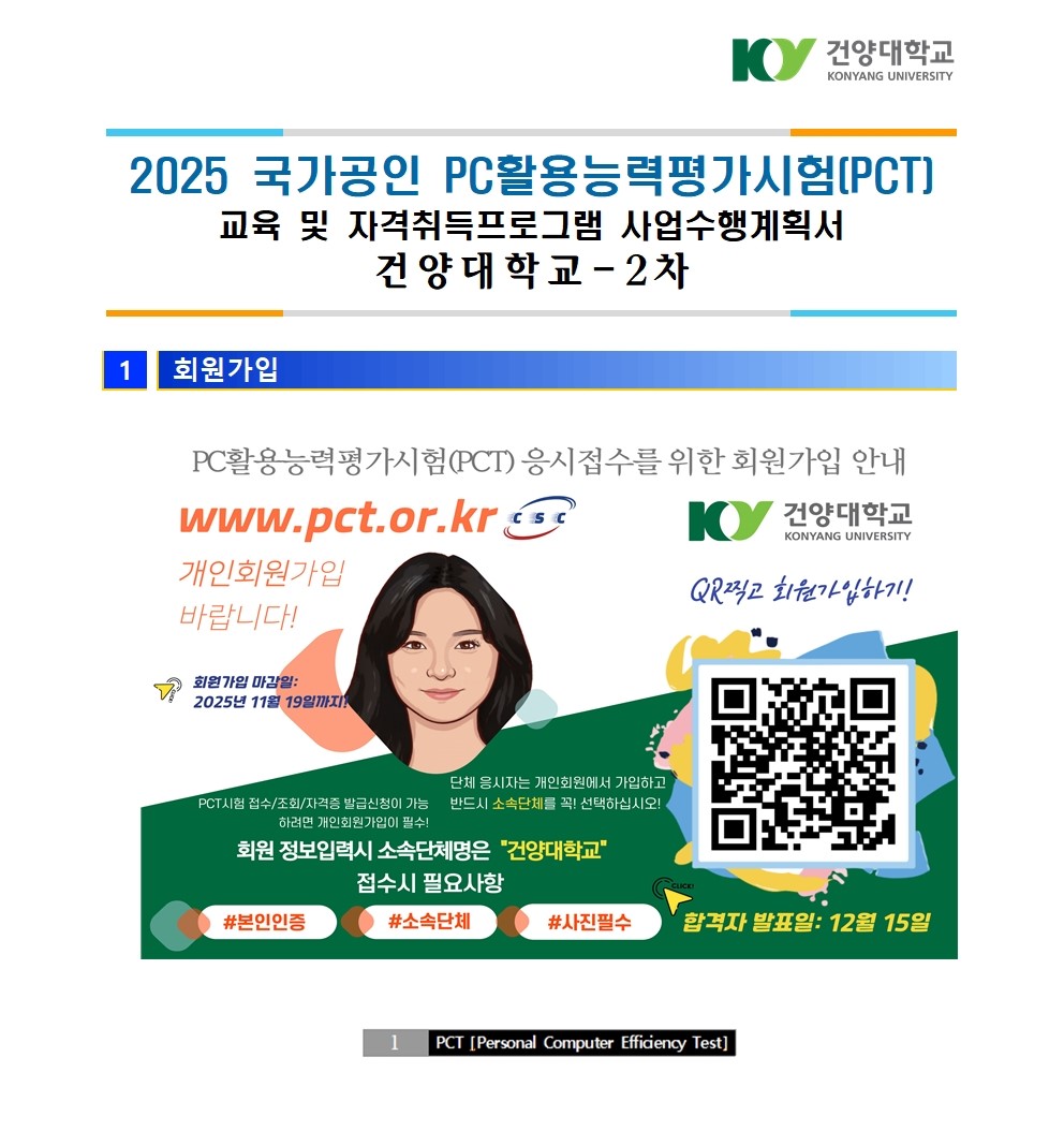 2025년 2차 건양대학교 재학생 대상 국가공인 PC활용능력평가시험(PCT)시험안내